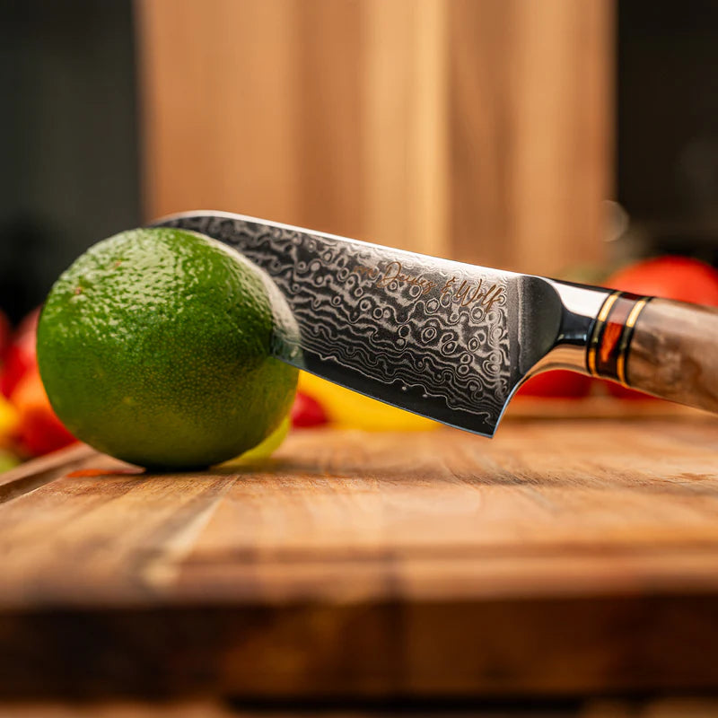 Entdecke mit dem Damast Messerset 'Resin' eine neue Dimension des Kochens. Der hochwertige VG10-Kernstahl verwandelt jede Küchenarbeit in pures Vergnügen. Spüre die perfekte Balance, während der edle Griff dir maximale Kontrolle verleiht. Dieses Set ist dein Schlüssel zu kulinarischen Meisterleistungen - jeden Tag aufs Neue.