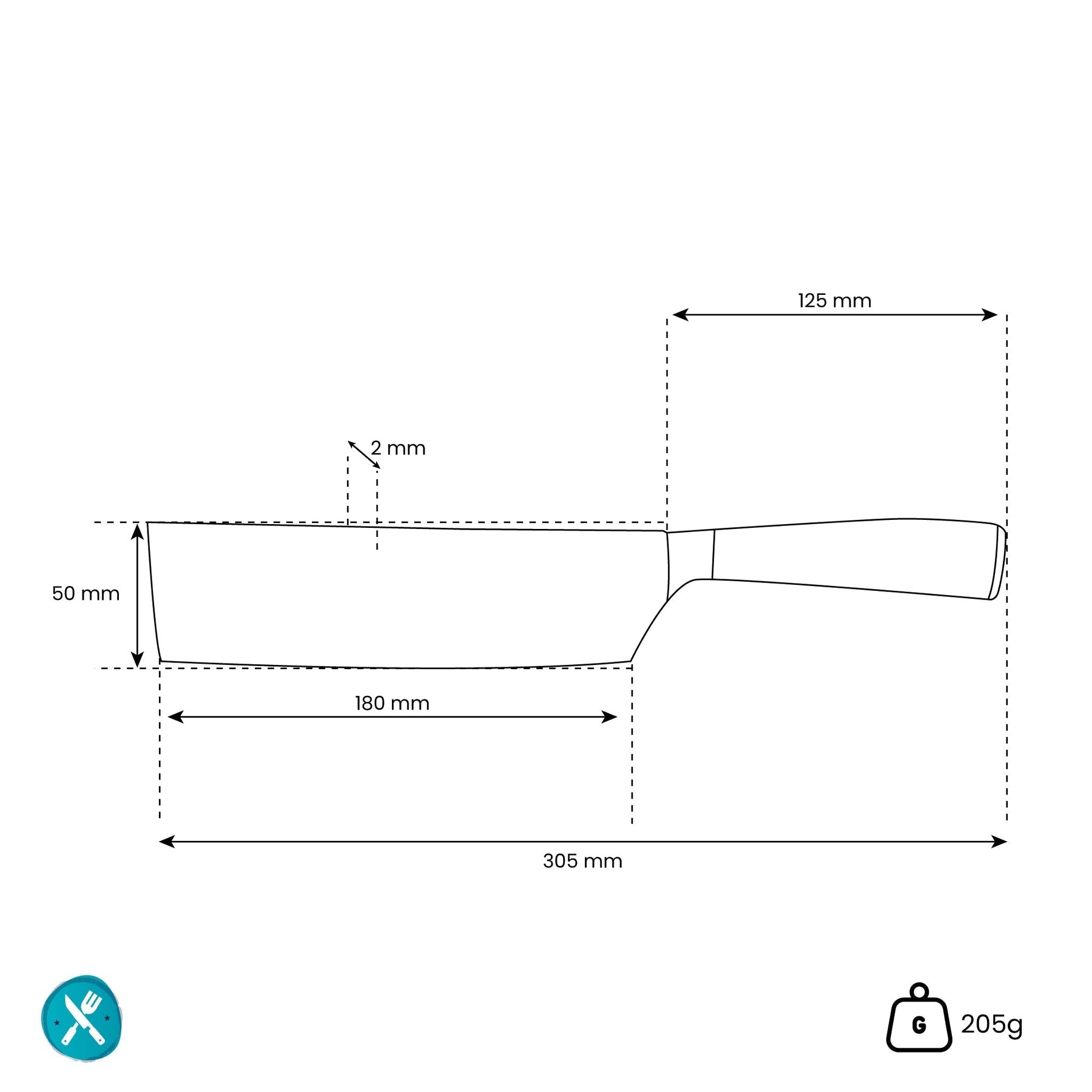 - Rasiermesserscharfes Nakirimesser mit einer 18 cm langenKlinge .